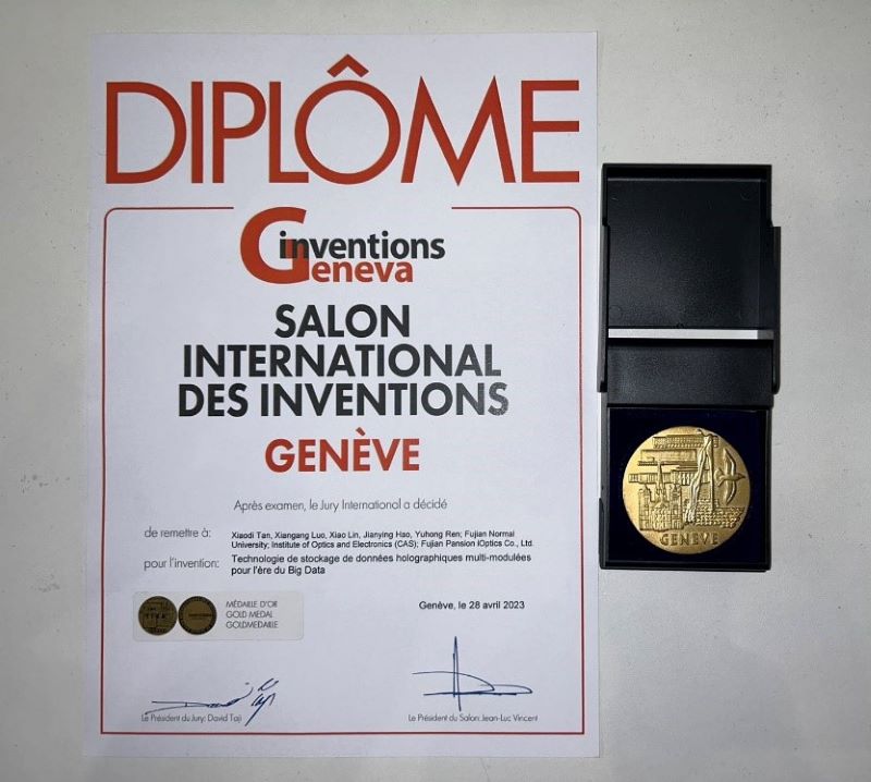 我司参与开发的“应对大数据时代的多维全息数据存储技术”项目参加了这次展会。该项目为大数据长期存储提供了新的解决思路,利用三维体存储和二维数据传输方式,结合多维信息的调制与解调,以更高的存储密度、更快的存取速度、更长的保存寿命和更低的数据保存成本,成为下一代数据存储技术的有力竞争者。尤其是该技术具有节能环保的特色,受到了评委的高度评价,最终该项目获得本届日内瓦国际发明展的金奖。该项目也得到了国家重点研发计划、国家基金区域重点项目和福建省科技重大专项等的资助,也是我司第一次参加这个展会。 |