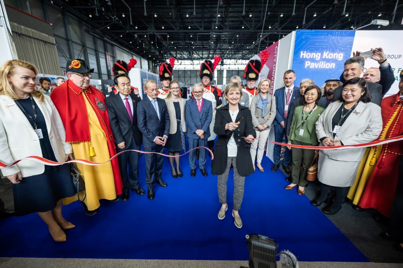 | 中国驻瑞士大使王世廷(左三)出席展会开幕式剪彩仪式 |